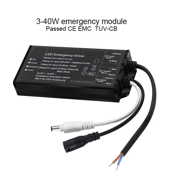 Emergency led driver passed TUV CB EMC test. Emergency kit with battery power back for LED lamps with external driver, this emergency driver is great to have and can be used on most fixtures that operate on DC 10-138V