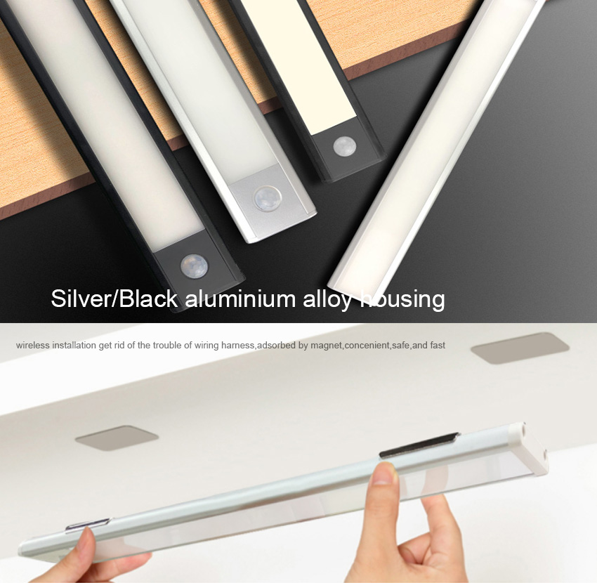 Rechargeable sensor LED cabinet light automatically turns on when human movement is detected in a dark environment, and automatically turns off after no motion is detected for about 15 to 20 seconds, super energy saving.