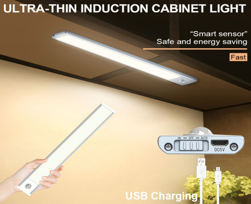 This cabinet light built in rechargeable battery, easy to charge through the USB cable (included). No need to replace the battery, more energy saving and environmental protection.